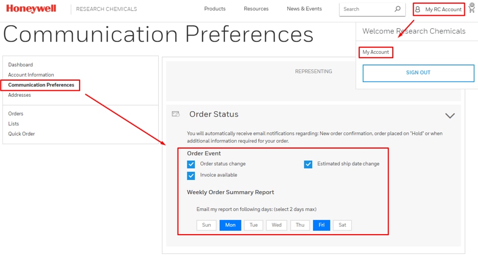 Navigate to the Communication Preferences tab on your account dashboard (“My RC Account”) and sign up to receive email notifications for order status changes, when a delivery date changes by >3 days, and when invoices become available. Also opt in to marketing communications to stay up to date on our latest news, events and offers.